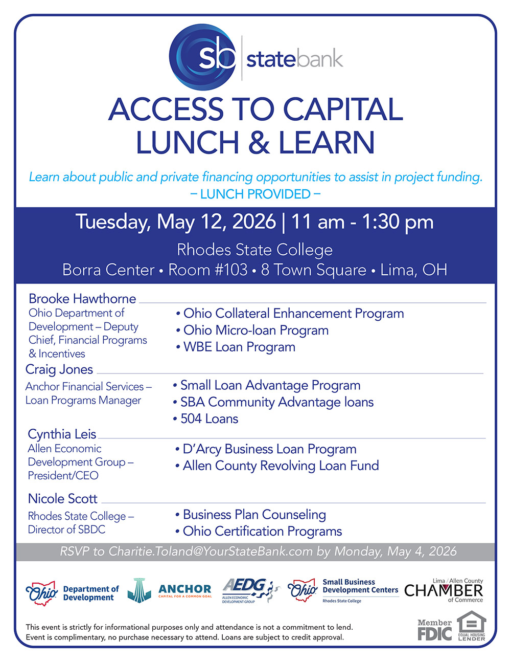 RSVP to Charitie.Toland@YourStateBank.com by May 4th.